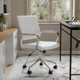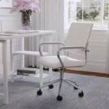 Elevate your home office or workspace with the refined charm and functional comfort of the Martha Stewart Piper Office Chair. This beautifully designed task chair blends timeless style with modern convenience, making it an ideal addition to any professional or home setting. Upholstered in soft, white faux leather, the Piper chair features a polished nickel metal frame that exudes elegance while offering durable support.