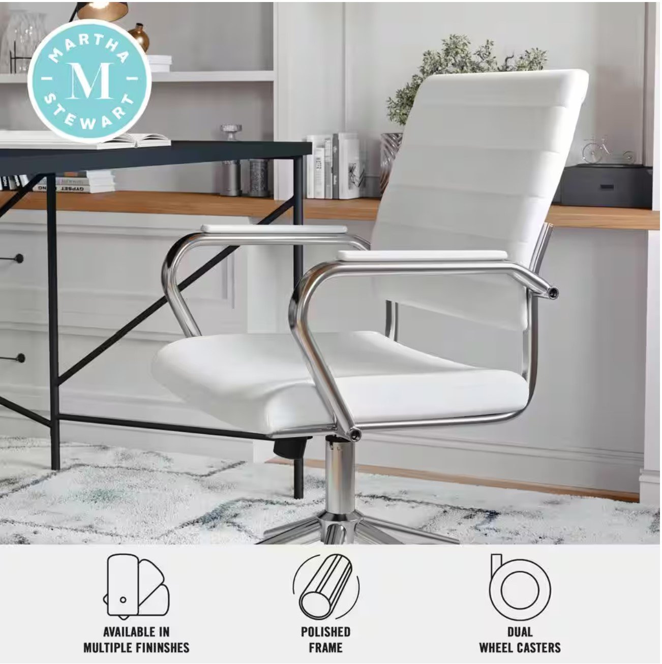- Elegant office chair designed by Martha Stewart to bring sophistication to any workspace